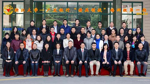 广发银行“精英领航”项目培训班第一期于2014年3月10日在华家池校区开学,浙江大学继续教育学院副院长郭常平教授、广发总行人力资源部副总经理乔玉良同志出席了开学典礼,来自全国各地的43位学员在浙江大学进行了为期六天的培训。