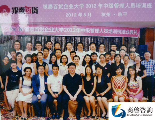 2012818日,由商启咨询主办的银泰商业中级管理人员培训班在杭州举行了毕业论文答辩和毕业典礼,通过系统的培训和学习,银泰的中级管理人员获得了良好的培训效果。