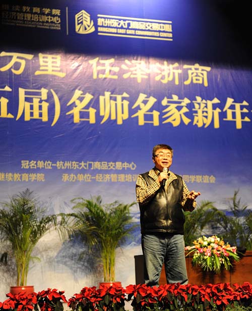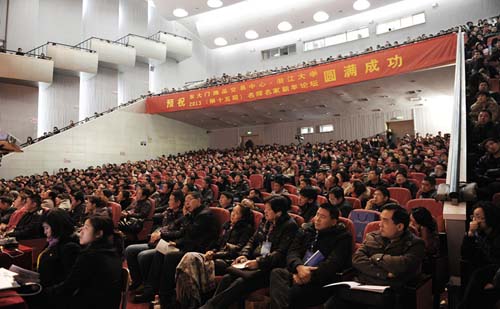 2013年1月12日,“乘风万里,任泽浙商”2013年浙江大学第十五届名师名家新年论坛在浙江大学紫金港拉开序幕。本次新年论坛是继2012年十八大会议胜利召开之后的浙江大学经典总裁学子们齐聚一堂,与名师名家们一起对过去、现在和未来进行思考和交流的一次盛会。