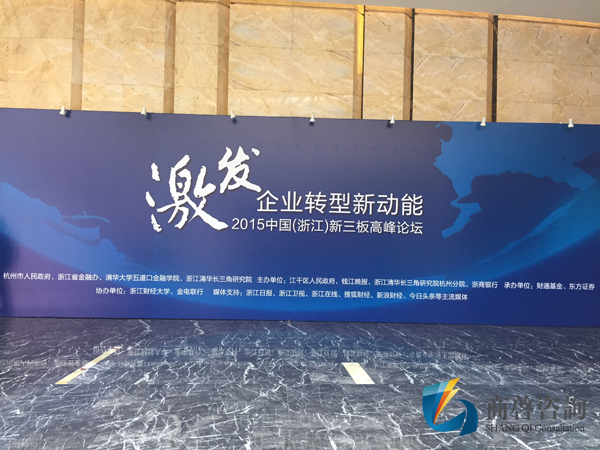 20151215日,商启咨询受邀出席在浙江省杭州市洲际酒店举办的《激发企业转型新动能 2015中国(浙江)新三板高峰论坛》。