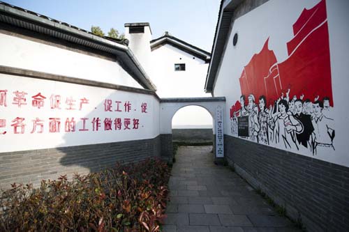 下午时分,到达了本次活动的目的地—龙川湾风景区,这里原先是一个知青点——浙江省生产建设兵团第十三团24连所在地。 如今,曾经与世隔绝的地方被开辟成为体现知青特色的旅游景点。中心区域是一个四合院形状的建筑群,有展览馆、陈列馆、知青旅舍、知青食堂,连住所的建筑名字也叫做“70公社”“80公社”。 路边的墙面上不时可以看到一段段“毛主席语录”及具有时代特色的绘图,那红红的五角星显示着它那历史的沉淀。花坛边的播音器里时不时的传送出文革时期的老歌,晚上老电影院里播放那黑白底色的《地道站》,周围的一切都带着那浓浓的知青时代烙印。