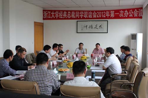 2012年4月28日,浙江大学经典总裁同学联谊会2012年第一次办公会议在浙江大学华家池校区中心南大楼六楼举行。同学联谊会秘书长、浙江大学继续教育学院经济管理培训中心主任叶祺仁老师主持本次会议,同学联谊会会长、副会长出席本次会议。