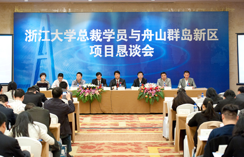 浙江大学继续教育学院院长阮连法在会上提到,舟山海洋资源得天独厚,舟山群岛新区获国务院批准成为全国首个以海洋经济为主题的国家战略层面新区,这是舟山千载难逢的发展机会,也为浙大与舟山的新一轮合作开启了新篇章。舟山的愿景和标杆是香港、新加坡,这非常振奋人心。希望参加本次垦谈会的浙江大学经典总裁班的100多位企业家和校友们能在舟山抢抓机遇,推动企业与舟山海洋经济合作共赢。 舟山宇锦企业执行总裁、经典总裁同学联谊会副会长、舟山分会会长俞杰明说,舟山先行先试、以企引企、以商引商的政策,对一切有利于新区建设及经济发展的项目给予了重点支持。这给企业在舟山的发展提供了良好的环境,企业也将随着舟山群岛新区的建设发展而进一步壮大。他希望通过本次在舟山群岛新区的考察,能够发现新的发展机遇,在舟山群岛新区干出一番新的事业,为浙江大学经典总裁学员企业的拓展提供新的商机。 恳谈会上,市经济开发区管委会、市科技创业园管理中心、定海区招商局、定海区产业服务中心领导分别作了详细的项目推介。会后,舟山市招商部门还与意向企业代表进行了项目洽谈。