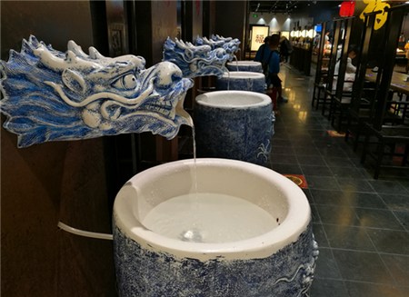 位于负一楼的和府捞面,做足了中国元素,又暗暗吻合于商场的“水”元素。