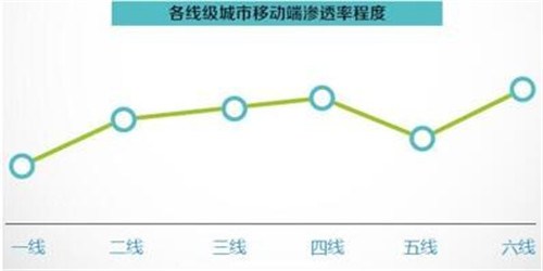 从不同等级城市的移动端渗透程度来看,城市等级越低,移动端渗透率反而越高。其中六线(上尧、遵义、郫县等)、四线城市(枣庄、十堰、北海等),领跑各线级城市,这表明,低线级城市跨越PC端直接进入移动电商消费阶段。
