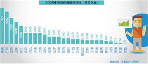 据21世纪经济研究院梳理,去年全国31省均出台了体育发展规划,提出具体目标的27省规划体育产业到2025年总规模超7万亿。其中,福建体育产业总规模达1万亿元。