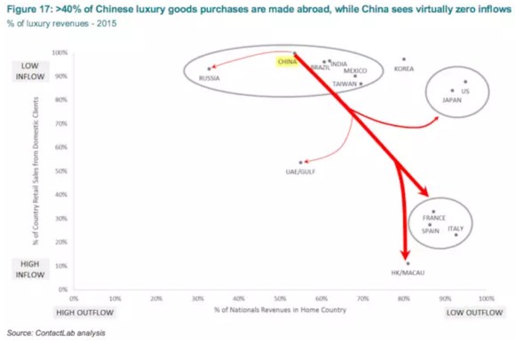 美国和日本超过90%的奢侈品消费都发生在国内,而在韩国这个数字也达到80%。