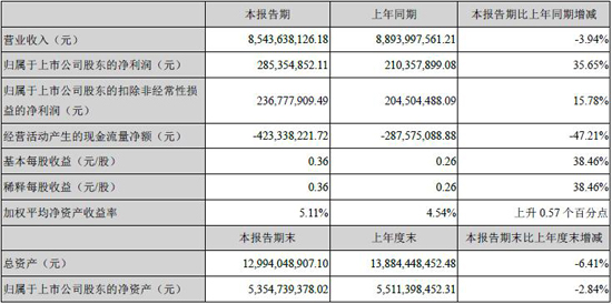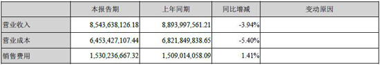 此外,其营业成本为64.53亿元,同比下降5.40%;销售费用为15.30亿元,同比增加1.41%。