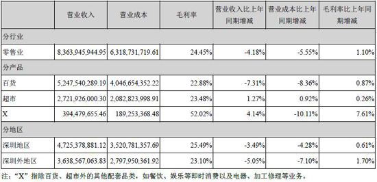 从毛利率来看,其零售业务整体毛利率为24.45%,同比增加1.10%。