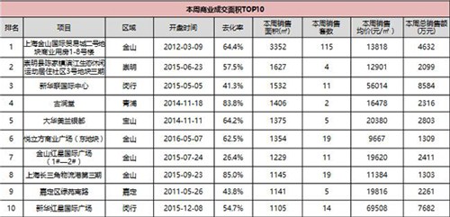 成交方面,上周上海商业成交量止跌回升,为37137㎡,较前周增长44.3%;成交均价回落至24576元,较前周下跌10.4%。上周成交前十的商业物业各产品类型均有涉及,其中以商业广场、专业市场居多,销冠仍为位于金山的上海金山国际贸易城。项目位于金山大道,距高速出口仅1公里,距区政府仅2公里。项目共分四期开发,其中一期项目已经基本建设完成并投入运营,并已形成五金、建材、家具一站式采购中心。目前总占地300亩,总建筑面积约12万平方米的国贸城二期在售。二期项目规划平湖馆、永康馆、海宁馆、义乌馆、金山馆五大产业基地直销馆,旨在与浙江各主要小商品产业基地实现无缝对接。