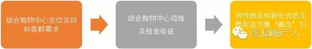 创新形式:结合购物中心定位及目标客群需求,根据动线分布及租金收益,将主题街及市集以各种新的形式呈现。