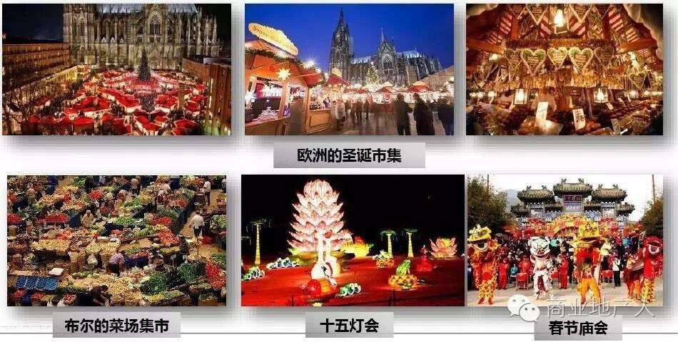 通常常见于世界著名的商业街区,购物中心可以借鉴异国风情街区式的设计、主题及经营理念的引入、用于地标性活动的打造。