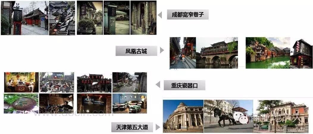 通常出现在一些古镇老街,可以分为遗产密集型、传统商业型、景区依托形、文化主题型、城市文化符号型,若将其概念引入购物中心,主要原则务必通过设计理念或其他方式,还原其核心价值亮点。
