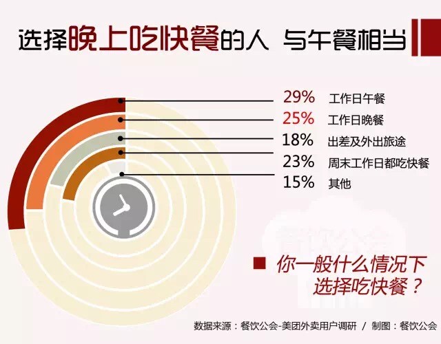 跟我们传统认知不太一样的是,愿意在晚上吃快餐的人,其实跟午餐差不多