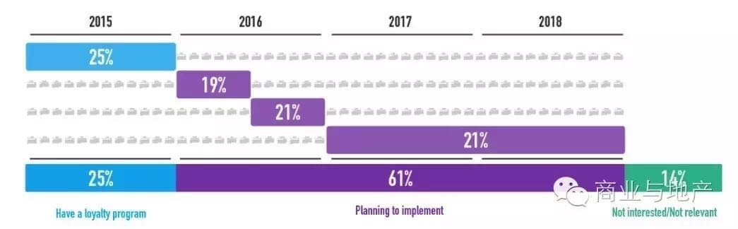 61%的购物中心计划到2019年之前实行会员计划,剩余约40%的购物中心计划到2020年之前实行会员计划。由此可见,会员计划对购物中心的长远发展具有十分积极的作用。