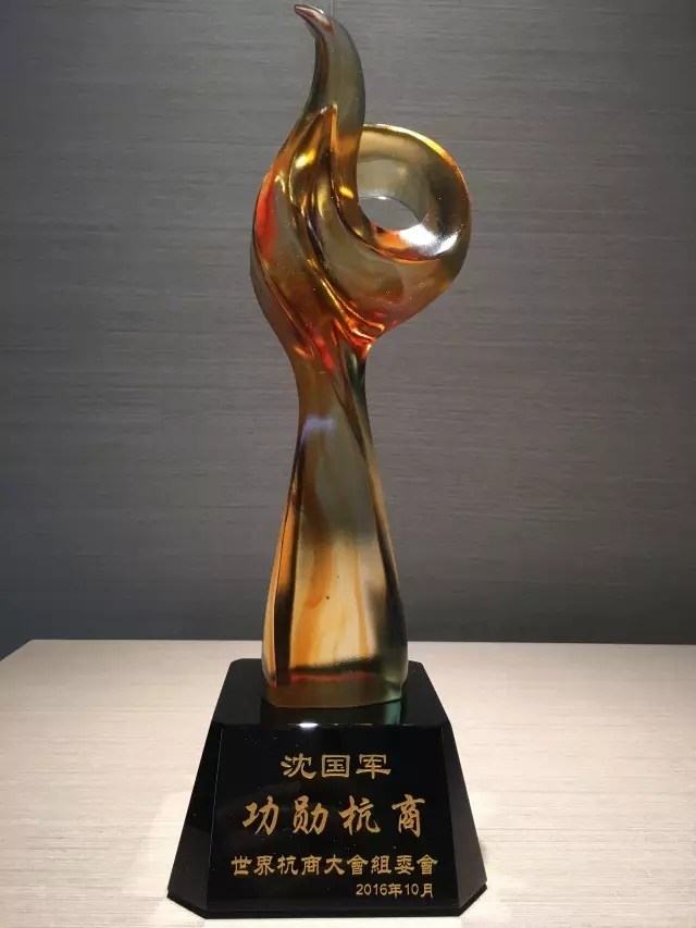 2016年10月19日上午,在第二届世界杭商大会开幕式上,银泰集团创始人兼董事长沈国军荣膺世界杭商大会最高荣誉——“功勋杭商”。据了解,“功勋杭商”主要是表彰推动杭州、浙江乃至全国经济建设,为改革开放和现代化建设作出较大贡献,为杭州发展作出显著贡献的知名杭商。