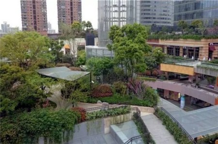 采用立体造园手法,整个商场呈现出的是一个层层叠叠的阶梯型花园,各种植物鲜花遍布于商场的每个角落,在3,4,5层开放的屋顶花园,设计师着力营造“移步易景”的园林景观,365种各式花卉绿植随季节更替,整个商场呈现出四季不同的自然景色。