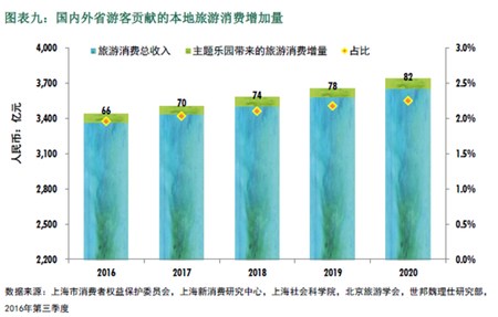 世邦魏理仕预测,国内外省游客将在2016年~2020年间为上海本地旅游消费市场带来66亿-82亿元的消费增加量,占上海整体旅游消费收入的比重超过2%。