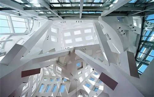 拉斯维加斯的克利夫兰脑健康中心更为特别,他们一改规规整整的医院画风,把整座扭曲,看上去像是不太规则的盒子被随意叠加了起来。这种自由扭曲的外立面使得整个建筑都充满活力,让人眼前一亮。
