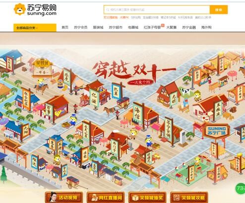在“苏家胡同”,这里仿古打造了苏宁的六大产业布局。苏宁广场作为苏宁的重要产业布局,于11月10日正式亮相无锡笑倾城。起舞飞歌、煮酒品茗、赋诗抚琴、投壶射箭、蹴鞠对弈、马车巡游、比武招亲……通过一系列古代的活动,传达体验式消费、场景式消费的理念。