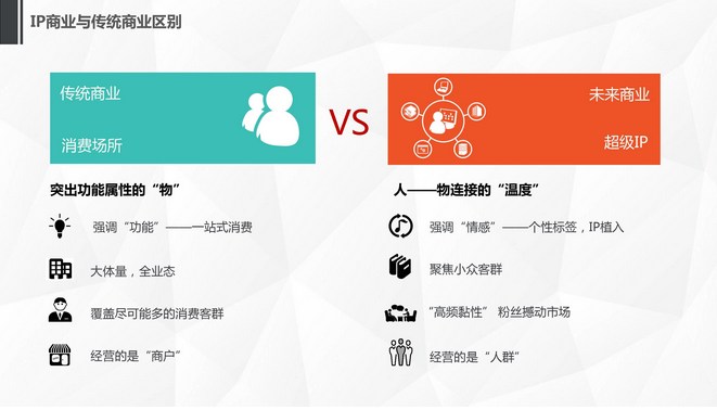 简单来说,传统商业实际上是一个消费场所,突出功能属性的“物”,而IP 商业突出的是人与物连接的温度。