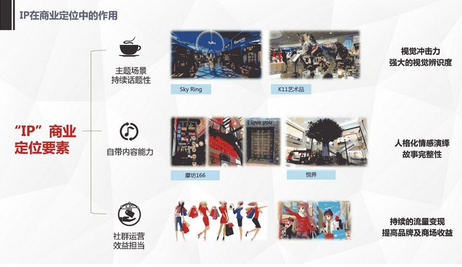 其实,IP商业并不是传统商业的竞争者或者替代者。IP商业是另一个思想维度的产物,代表了一种新的思维方式和商业哲学:商业的定位、招商及运营时不再局限于场内空间,而是基于大数据分析进行目标定位,将项目人格化招商,进行流量的经营,用类似于社群的方式进行深度客户服务,最终使整个商业中心成为一个汇聚流量、具有强大影响力的亚文化社区,即超级IP。