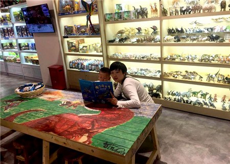 七宝万科广场一楼中庭里,各种恐龙模型吸引了许多孩子和父母驻足观看,他们在霸王龙、长颈龙等恐龙模型面前指指点点、讨论个不停。当发现这些逼真的恐龙模型能叫、能动,有的甚至还能飞之后,孩子们表现得更激动了。而三楼的彩虹学堂里,还有专门被设计成卡通模样的恐龙模型,看起来更加可爱,也可以激发小朋友们的学习兴趣。