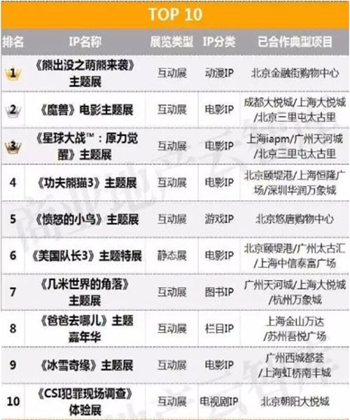 最受购物中心欢迎IP主题展TOP10