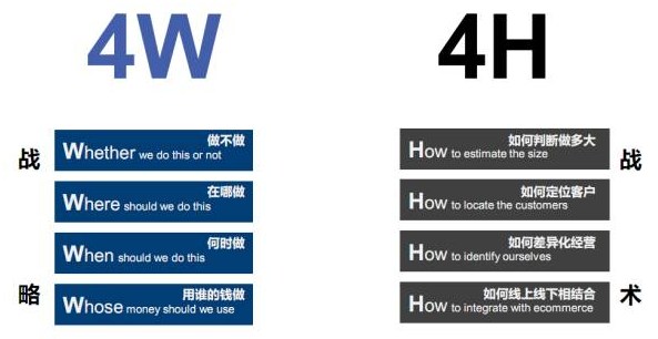 为了避免过分依赖后期运营的拯救力,前期拿地预判与定位选择一定要做足功夫。万科在做前期定位时主要采用的是4W+4H原则,一个解决战略问题,一个解决的是战术问题。