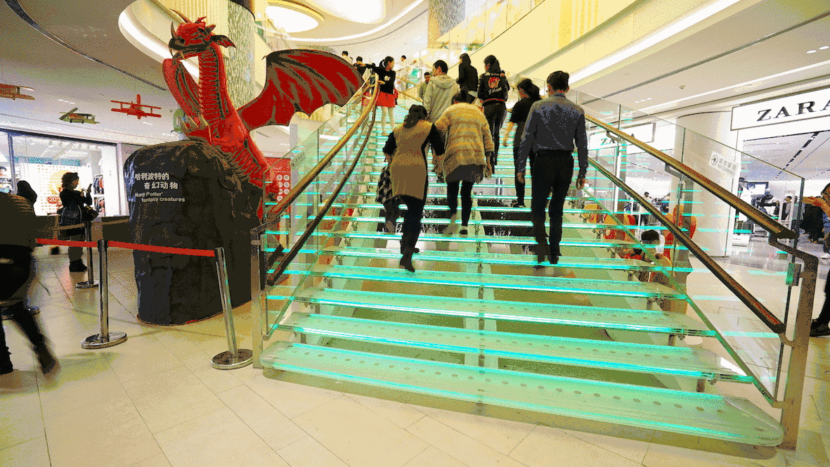 ▲ 踩上去会变色的彩虹楼梯(上海七宝万科广场)