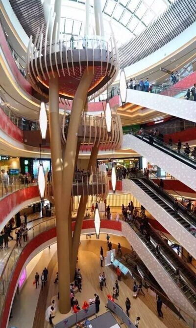 ▲商场中庭需要到3-5楼才能上去的树屋(上海七宝万科广场)