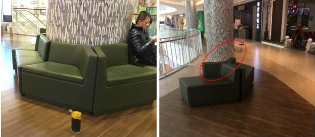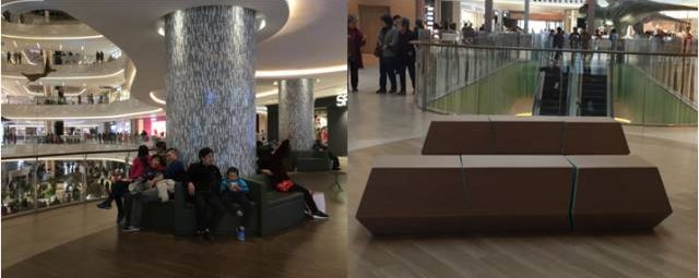 比如在七宝万科广场,不同造型、材质各异的休息椅随处可见