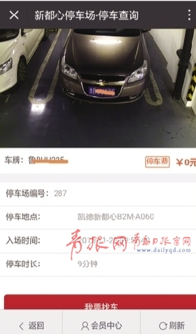 图为通过某商场手机端的智能寻车系统,可以清楚地查询车辆的停放位置。