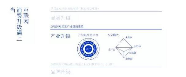 第二个升级是产业升级。品类升级是所有人都能看得到的,是否看到品类的升级就能够把这个品牌做好呢?我们觉得不是这样。互联网给我们带来的最大的价值,我觉得是对于这个产业链的重塑。在线下有很多的专卖店、超市、批发市场,他们一年可能会卖出几个亿的产品,但是大家可能不知道这些产品卖给了谁。截止到现在,三只松鼠总共卖出了90亿的产品,背后全部可以数据化,可以实现产品和用户的全流程追溯。