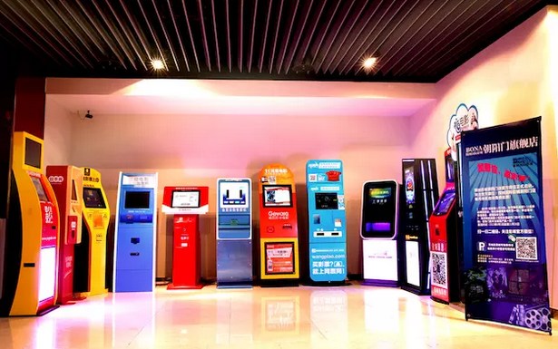 北京博纳影城朝阳门旗舰店门口的取票机