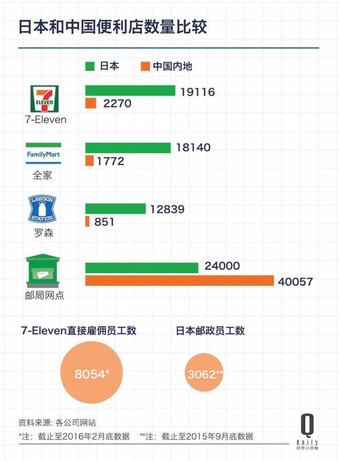 而按照7-Eleven从2011财年至今、每年能净增超过1000家门店的速度计算,到2017年初,就会突破2万家门店,与大国企“日本邮政”管理的直营邮局总数相当。