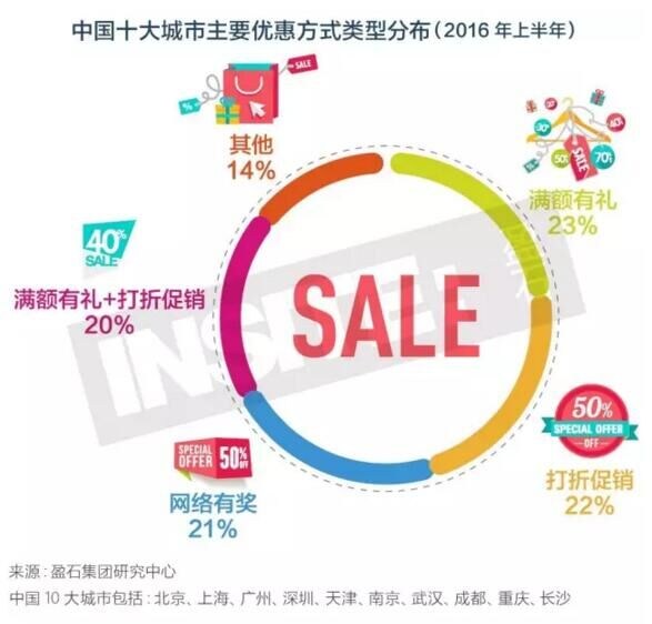 根据盈石集团研究中心的数据显示,五大主要优惠方式分布较为平均。其中,满额有礼与打折促销联动的方式,占比上升至19.8%,同比上升11.2个百分点,环比上升10个百分点。多样化的优惠方式可以适应或满足消费者不尽相同的消费习惯。而在其他类别中,购物中心开始采取到店即送礼品的方式来吸引更多的客流量为自身造势,如在三八节为到店女性免费赠送康乃馨等。利用贴心的小礼物来提升消费者的好感度及忠诚度,不失为购物中心增加人气的有效途径之一。