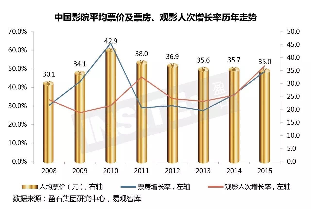 盈石集团研究中心统计,中国影院平均票价自2011年起呈现下行趋势,并且观影人次增长率稳步提升,显示出在线上促销的带动下观影需求显著增长。