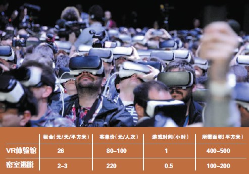 在睿意德的调查中,购物中心内规模较大的密室逃脱年平均盈利可达200万-500万元。虽然能赚钱,但由于消费群体的固定和市场容量有限,密室和鬼屋往往被打上“短命”的烙印。相较于密室逃脱,VR体验馆在经营管理上显得更为灵活。北京商报记者调查发现,密室逃脱一般需要较大的场地空间。以占地面积在400-500平方米的密室逃脱体验馆为例,场馆内可设置5个主题房间左右。胡宇翔表示,经营密室逃脱,5个主题房间的开店成本大约要在150万-200万元之间。对比而言,经营一家VR体验馆需要100-200平方米的场地面积,开店成本可以控制在40万元左右。