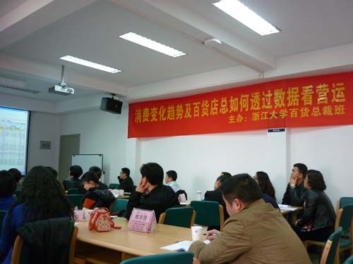 浙江大学百货总裁班2013年3月30-31日在浙江大学华家池校区举办《消费趋势分析与百货经营数据分析》培训课程。