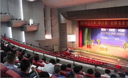 革新:把握变革创新脉搏,勇敢迎接新机遇与挑战;责任:肩负社会责任使命,乐于奉献实现良性发展;共赢:引领融通共赢理念,智于合理资源共同发展,带着共同的“革新、责任、共赢”主题理念,2013年6月15—16日,由浙江大学继续教育学院主办,经济管理培训中心、经典总裁同学联谊会联合承办,浙江省企业联合会、浙江省企业家协会、工信部中小企业领军人才浙江大学基地联合支持,融创、绿城与大家全程冠名的“革新 责任 共赢——2013浙江大学(第16届)名师名家论坛”在美丽的浙江大学紫金港校区隆重举行。
