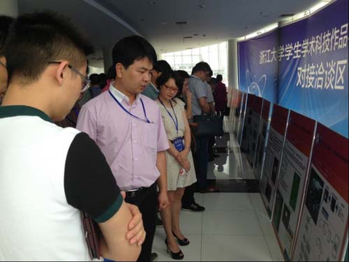 三、倡导和践行社会责任,是企业家的光荣使命,在本次论坛中,实践“三百工程”,暨“百万助学——捐助寒门学子、失学儿童,百万扶贫——捐建或捐助希望小学、贫困学校图书馆、体育设施及教学设施,百亿创业——浙商回归项目、大学生创业项目”,之“百亿创业”,将学生专利产品展示、转化环节将在论坛中悉数开展,会场的二楼展示、洽谈区组织了浙江大学优秀学生的专利作品展。