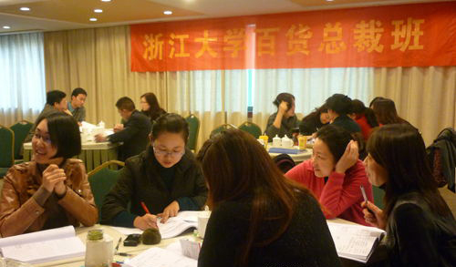 2010年11月25-30日,浙江大学百货总裁班在杭州举办了百货、购物中心块面的专业培训课程。课程内容包含了百货、购物中心商圈经营、客源开发与维护、百货公司年度经营计划制定、百货公司预算编制等专业内容。总裁班学员们,进行了分组探讨和竞赛,通过实战演练收获满满。
